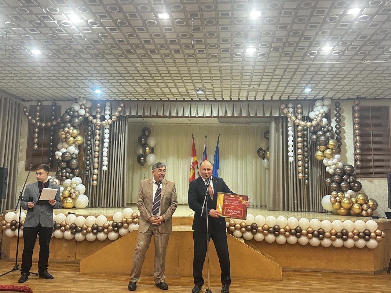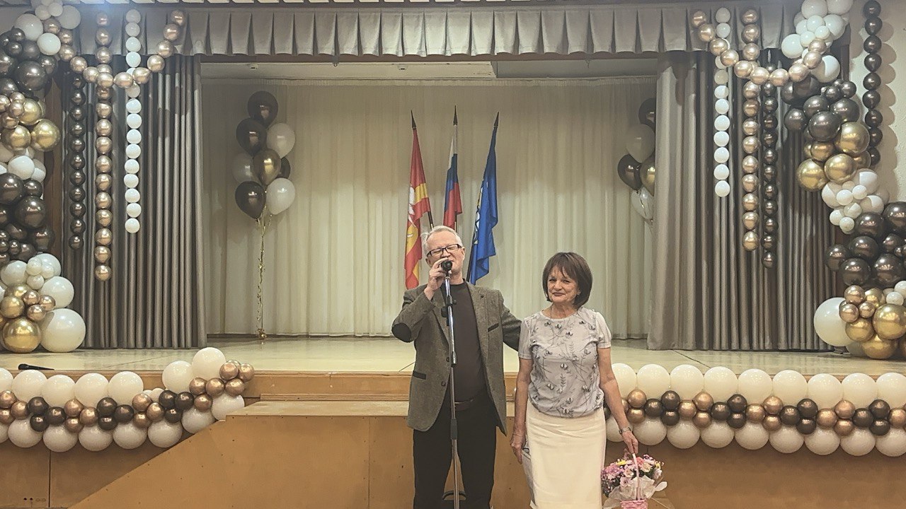 — наши шефы, представители реакторного завода ПО "Маяк" – главный инженер Сахаров Дмитрий Петрович и председатель профсоюзного комитета Волков Андрей Владимирович.